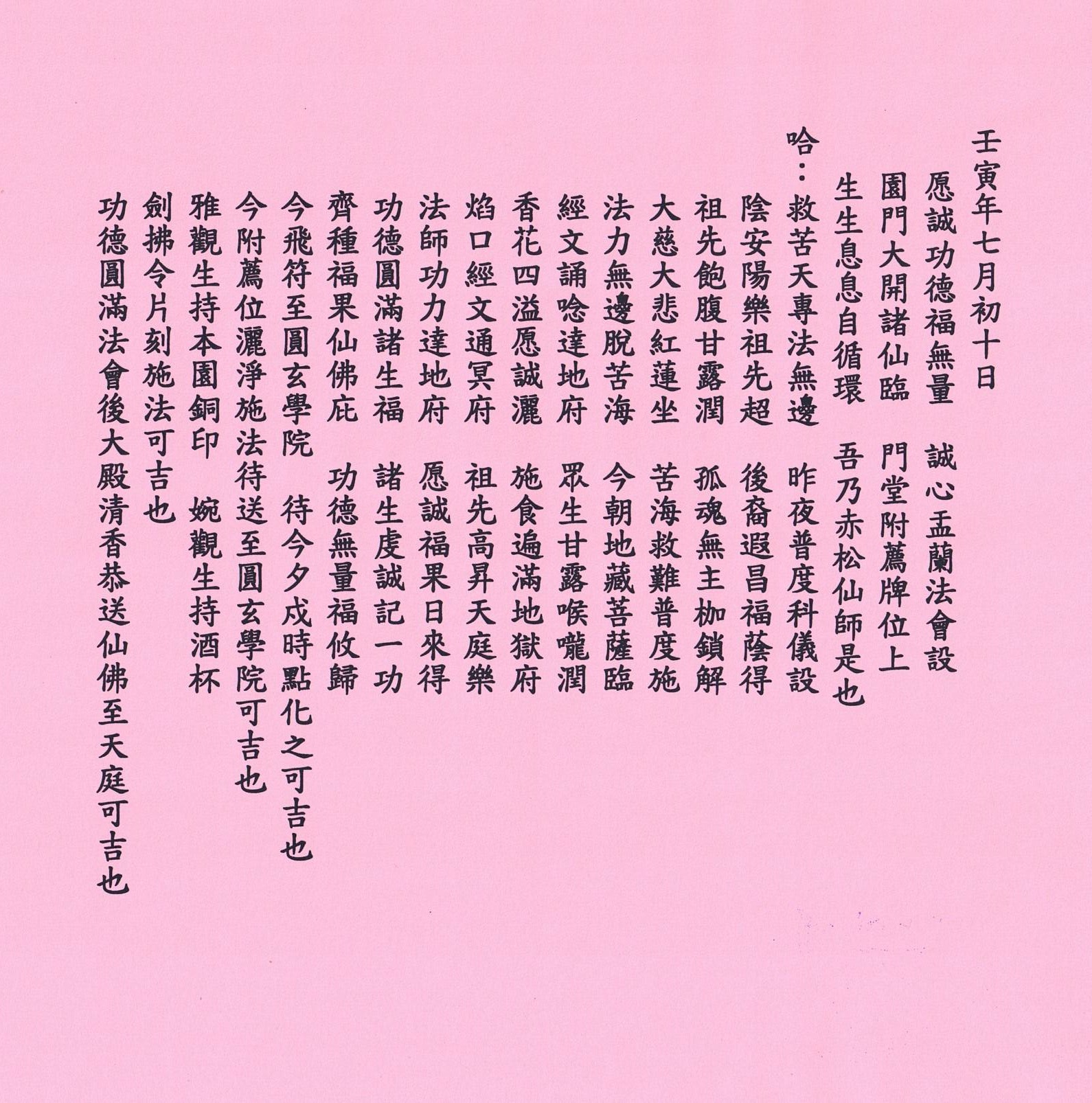 壬寅年七月初十 門生乩文