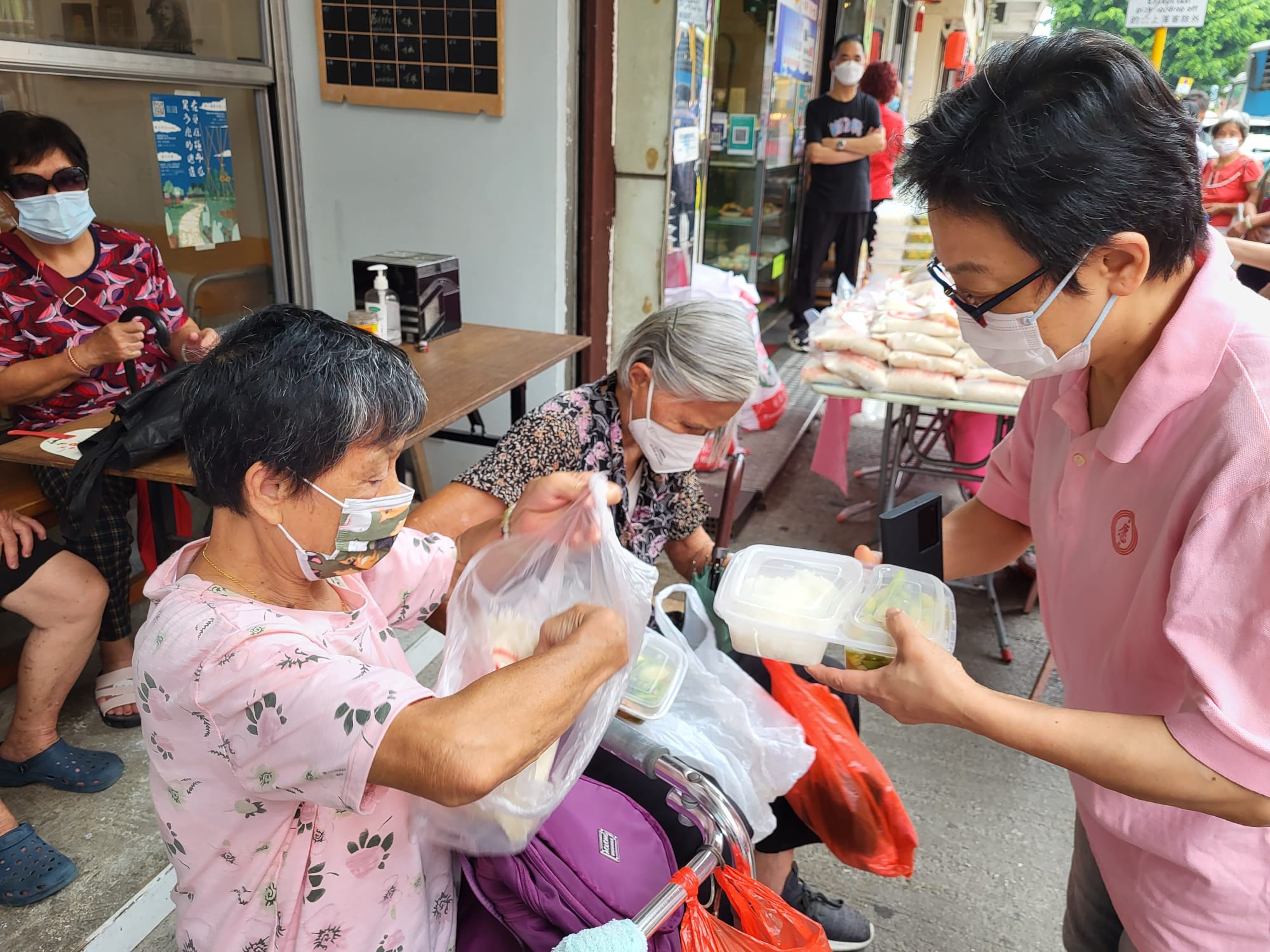 本園於2022年7月29日一年一度盂蘭法會前周,假座深水埗新聚寶素食館派發齋飯菜給街坊老人及居民享用。
