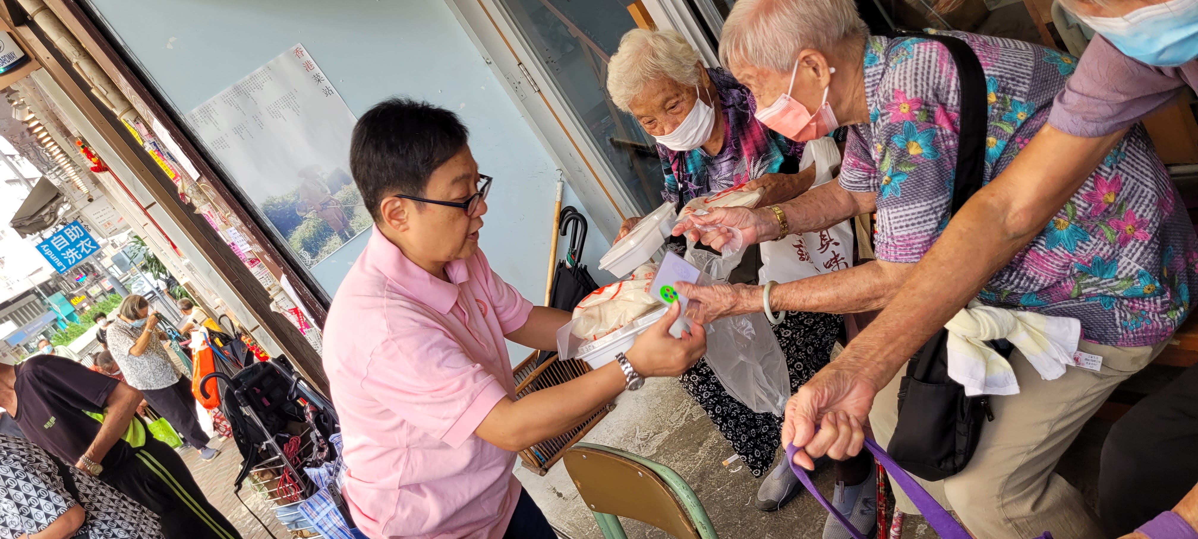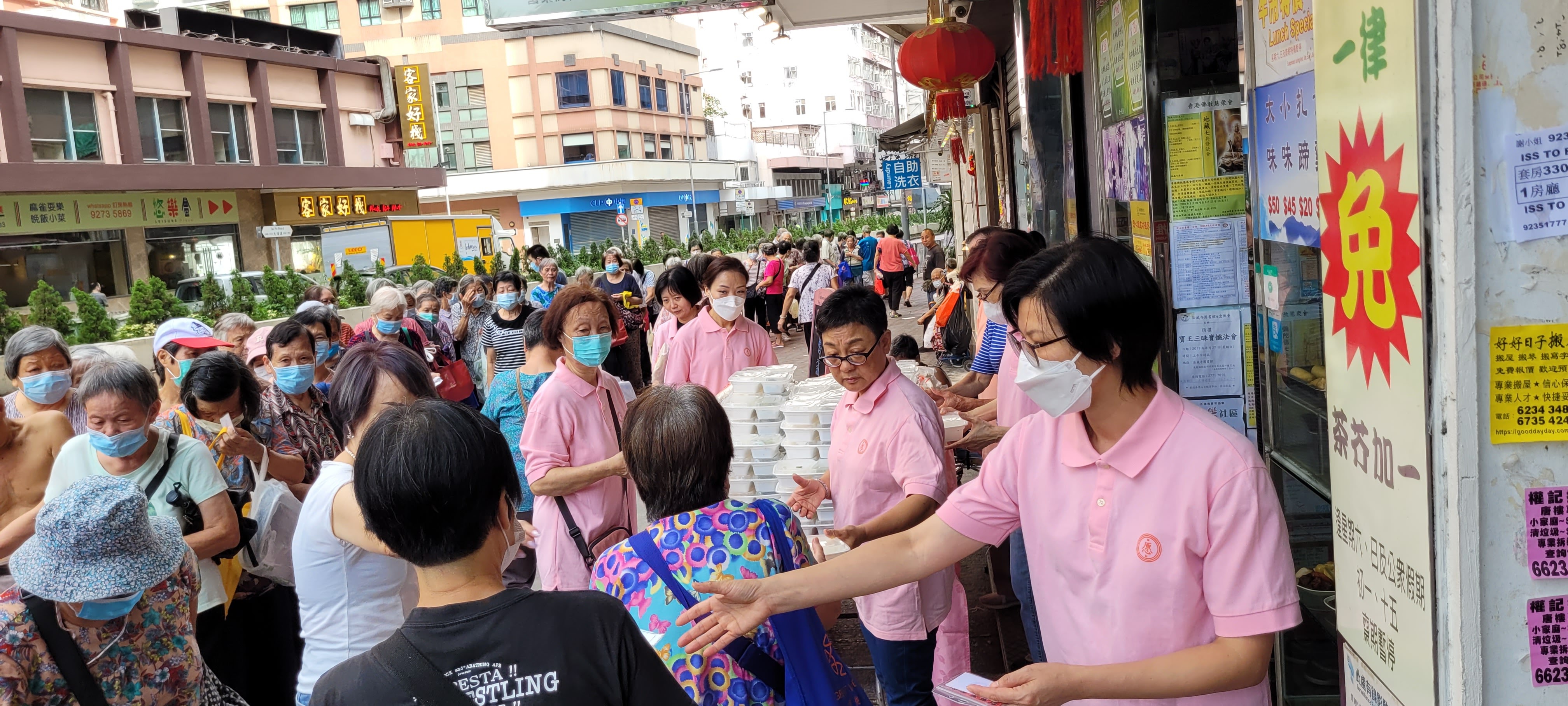 本園於2023年8月19日在深水埗大埔道新聚寶齋廚,派發共200盒齋飯給街坊長者晚膳。