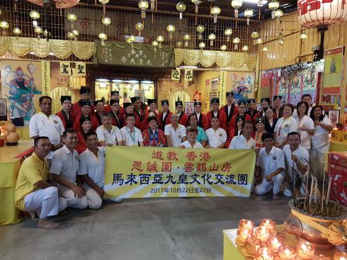 本園及雲鶴山房組成文化交流團,於誦拜九皇朝及清微禮斗後合照。