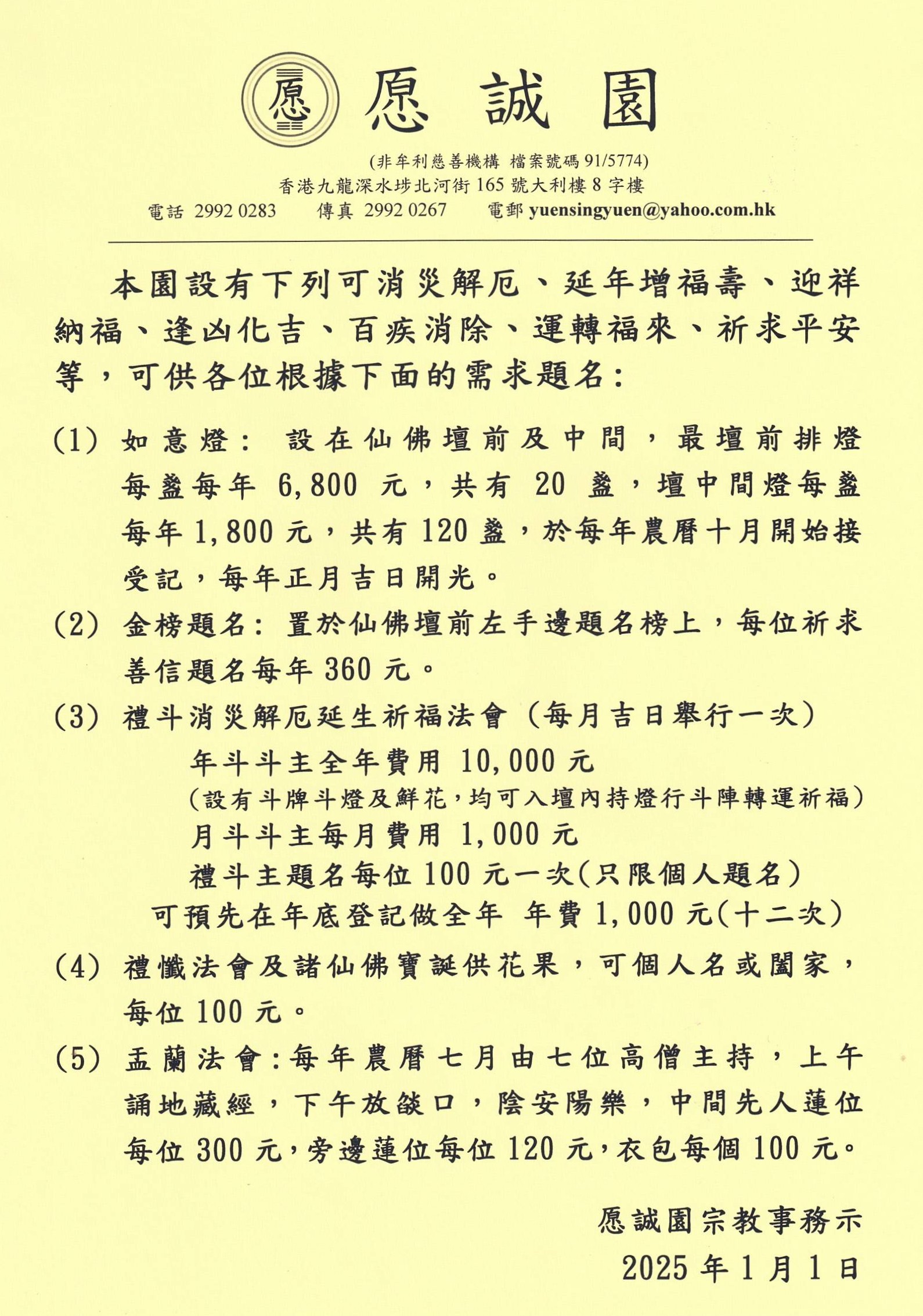 [01/04/2025] 更新 主頁 「如意燈、金榜、禮懺及孟蘭法會之用途」