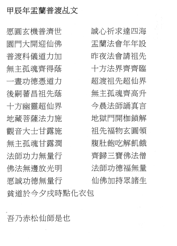 [13/08/2024] 更新 主頁 新增通告 甲辰年盂蘭普渡乩文 及 壇內活動 「甲辰年七月初六盂蘭普渡法會」