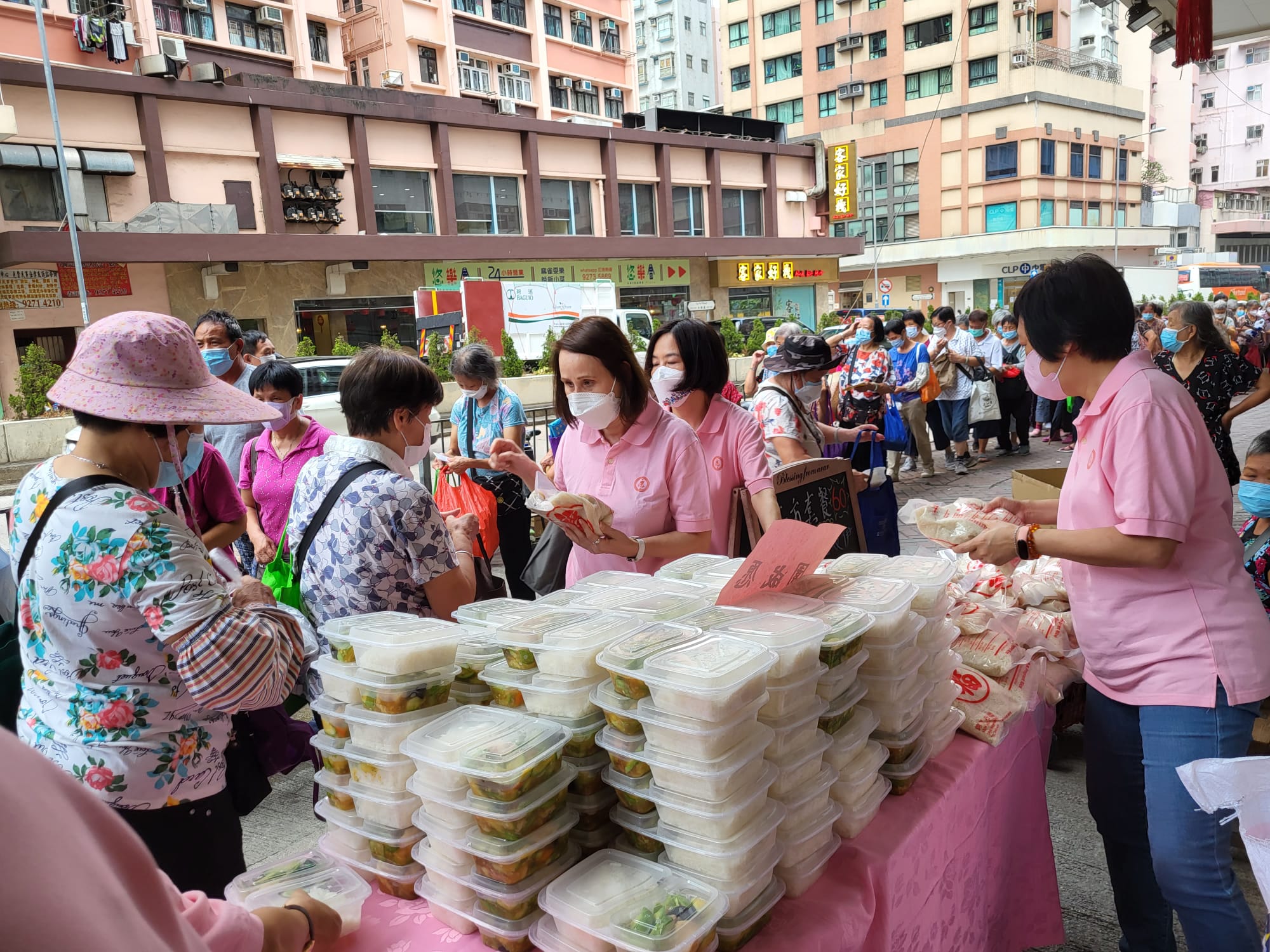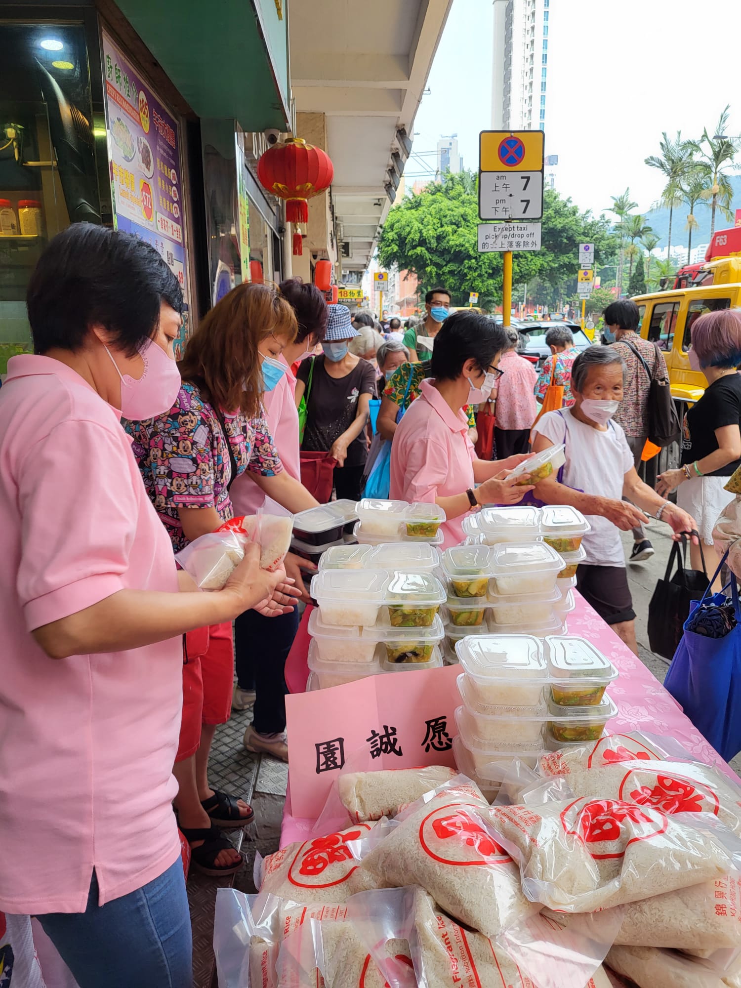 本園於2022年7月29日一年一度盂蘭法會前周,假座深水埗新聚寶素食館派發齋飯菜給街坊老人及居民享用。