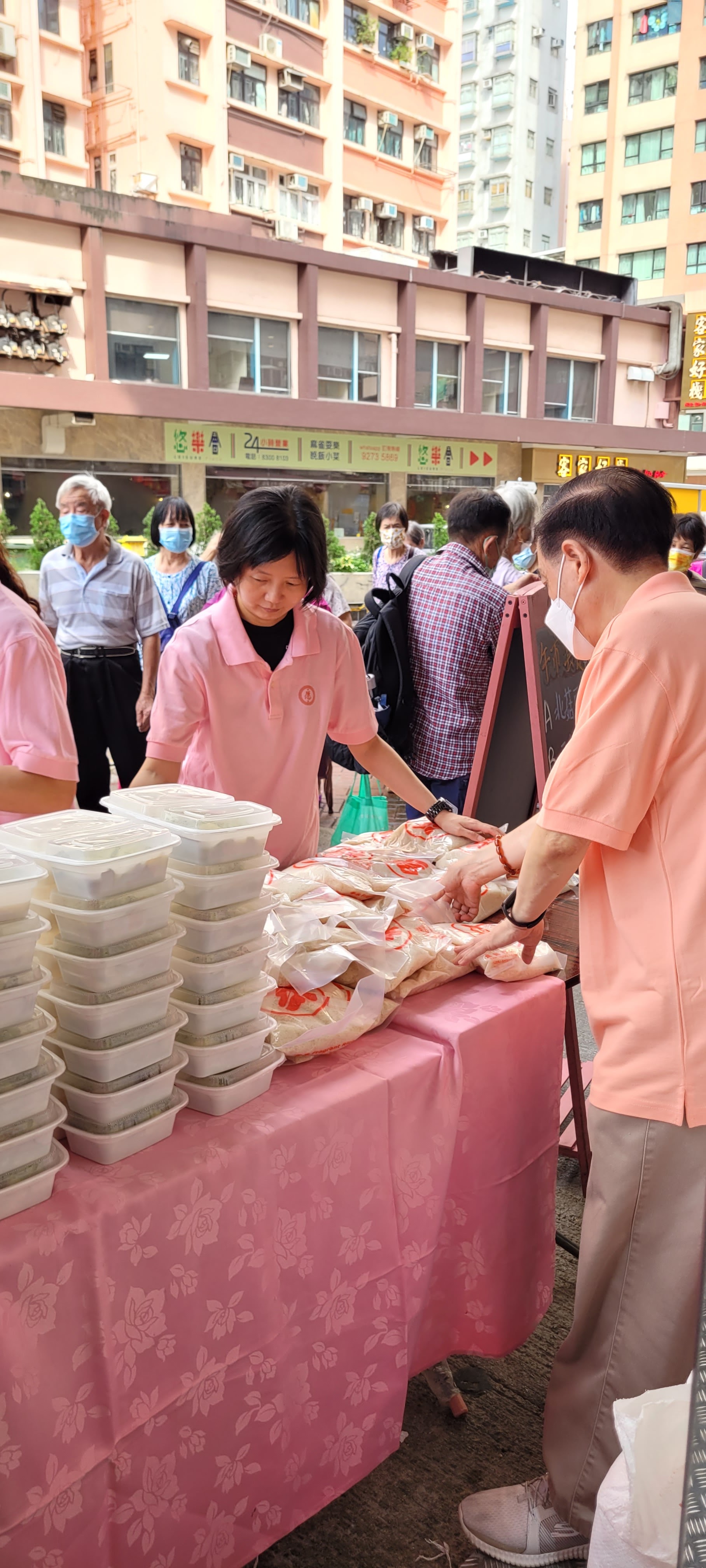 本園於2023年8月19日在深水埗大埔道新聚寶齋廚,派發共200盒齋飯給街坊長者晚膳。